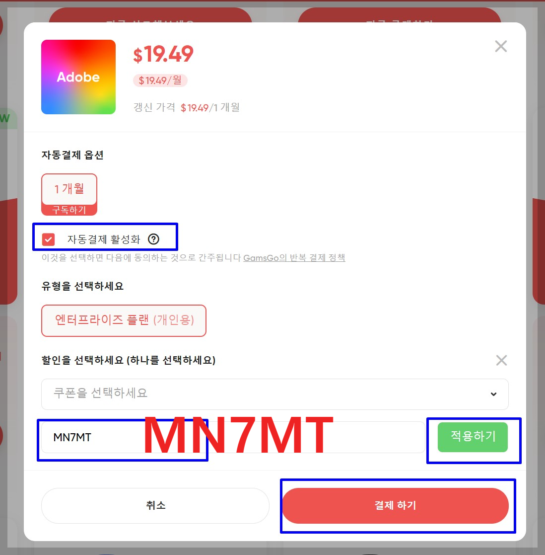 - 할인코드 입력: MN7MT